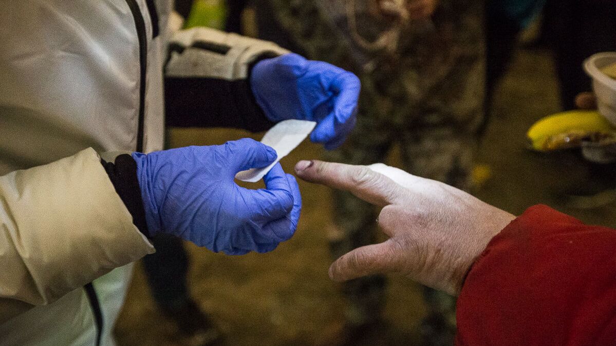 Волонтер фонда оказывает медицинскую помощь бездомному. Архивное фотоДзенMaxTelegram