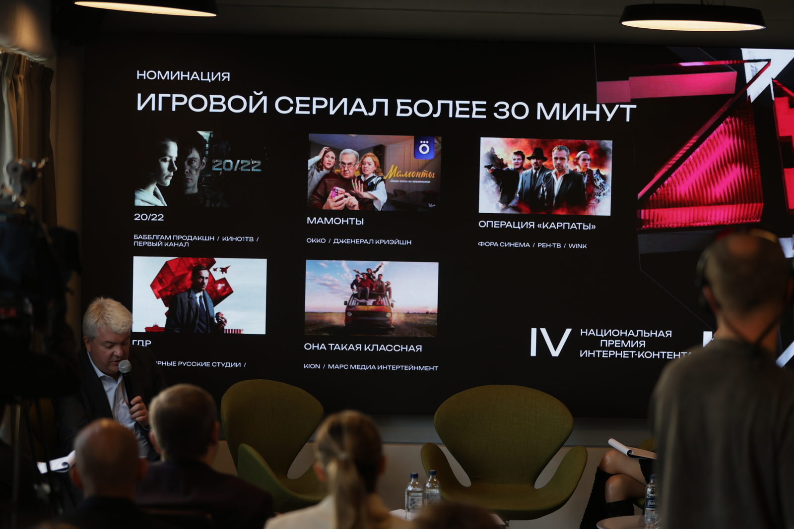 В номинации «Игровой сериал до 30 минут» заявлены проекты «Дядя Леша», «Многодетство», «Недетское кино», «Многогранники», «Любопытная Варвара». В категории «Игровой сериал более 30 минут» на награду претендуют сериалы «Операция «Карпаты»», «Она такая классная», «ГДР», «20/22», «Мамонты».