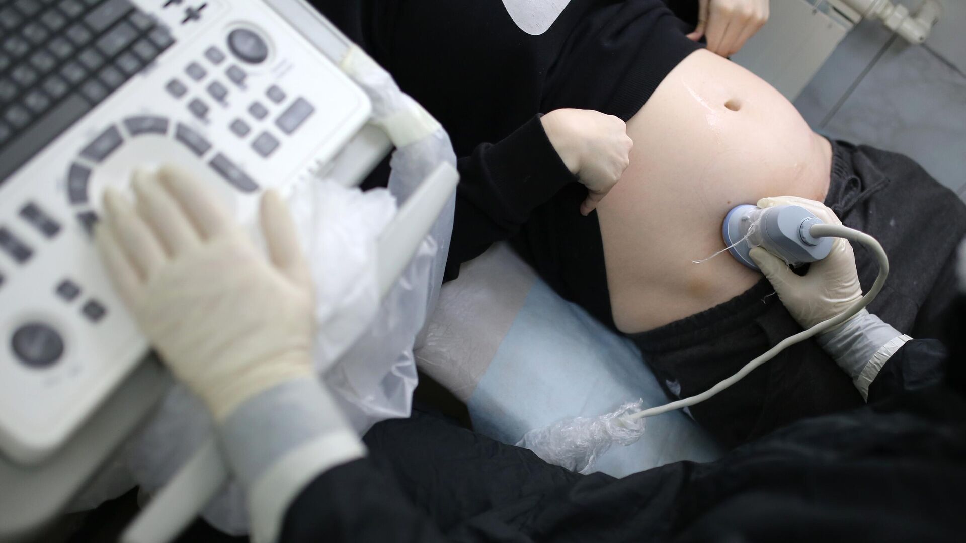Медицинский работник делает УЗИ пациентке в роддомеДзен